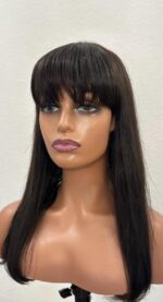 Der gerade Schnitt mit vollem Pony sorgt für einen modernen, zugleich klassischen Look.